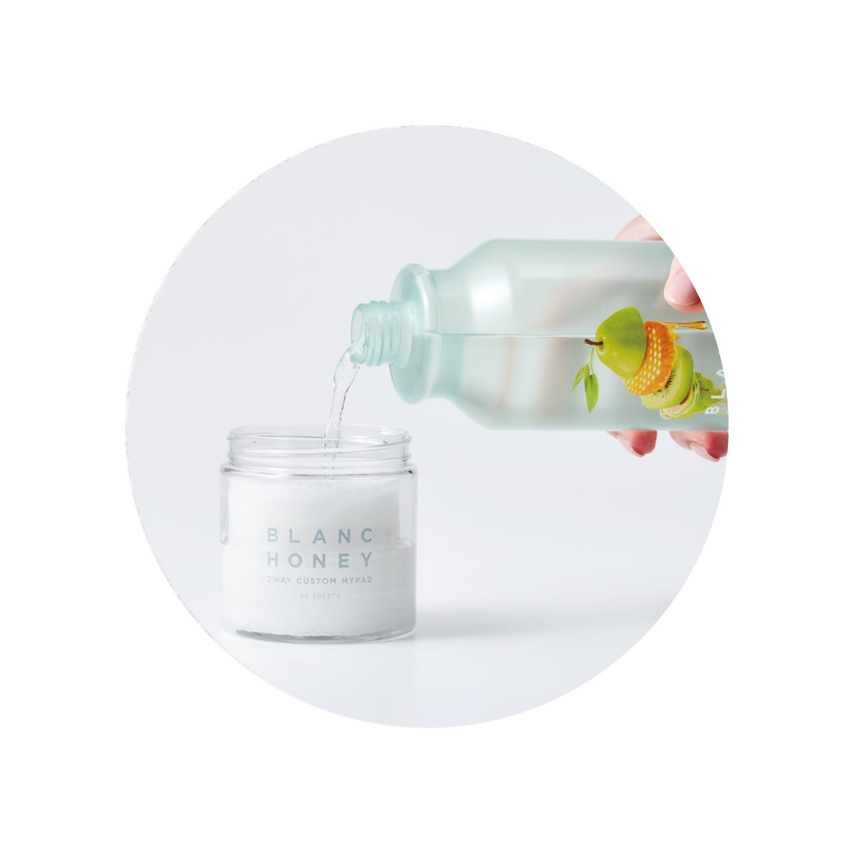 ブランハニーの拭き取りローションや美容液を染み込ませることで自分だけのオリジナルのトナーパッドが作れます。黒ずみ*²・角栓の拭き取りケア、乾燥毛穴の保湿ケア、朝の拭き取り洗顔など様々なシーンでご使用いただけます。