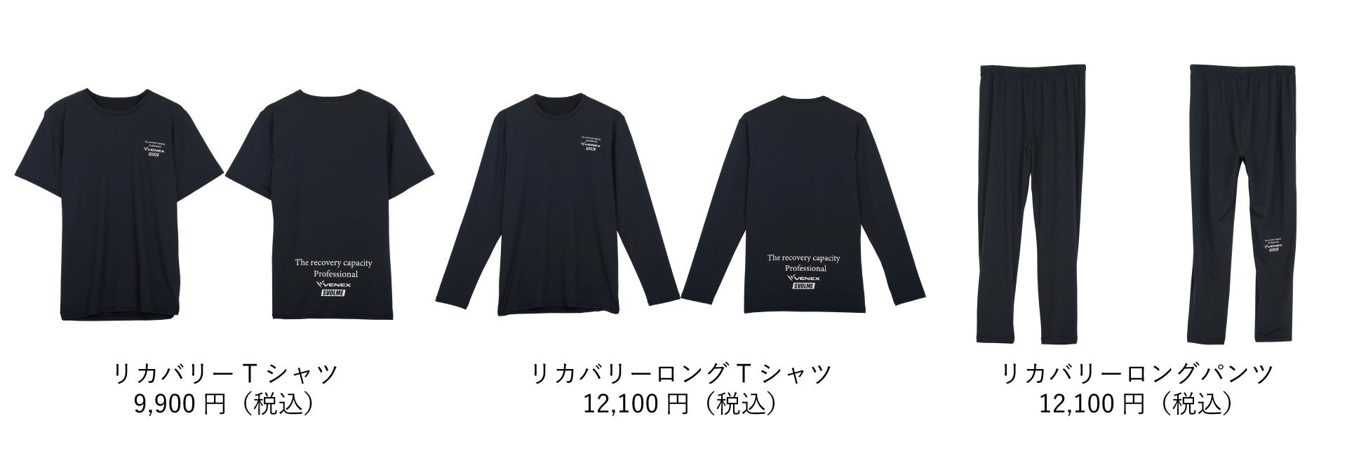 ベネクスリカバリーウェアの機能である、『身に着けるだけで質の高い休養をサポートする』はそのままに、おうちの中だけではなく、合宿中や移動中などの外出時でも着やすいデザインにこだわり、「リカバリーTシャツ」、「リカバリーロングTシャツ」、「リカバリーロングパンツ」の全3型を展開します。2022年12月2日(金)正午より、当社オンラインショップで販売を開始し、今後は当社がサポートする学校やチームへの販売も行ってまいります。