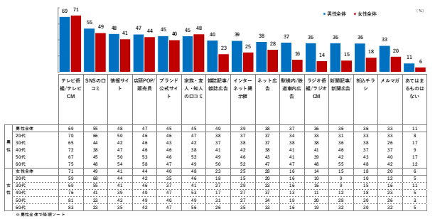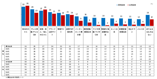メイクアップコスメ使用者は、男女ともに“口コミ系”の情報を重視する傾向