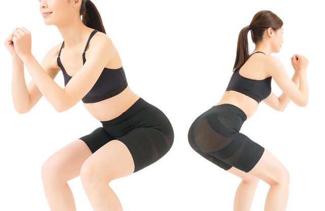 - はいて運動してスクワット効果が実現!負荷をかけて運動することで大腿前部を鍛える!