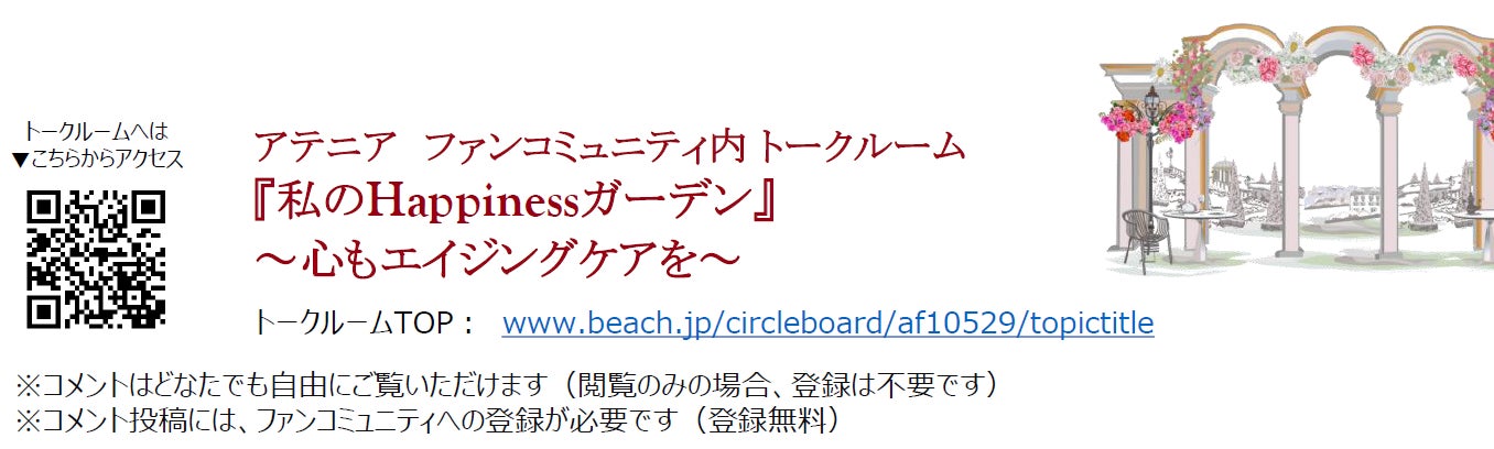 - アテニア ファンコミュニティ内 トークルーム『私のHappinessガーデン』 ~心もエイジングケアを~