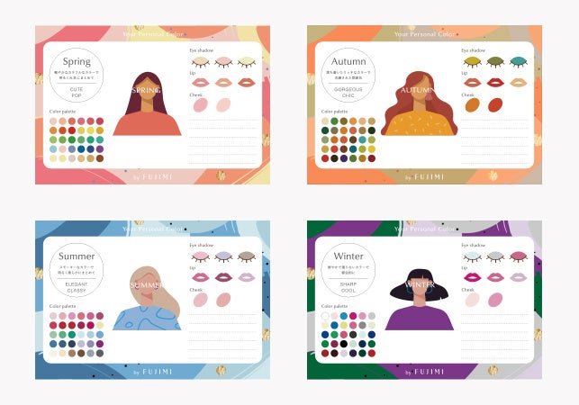 パーソナルカラー診断と美容分析を行っていただいた方に、「カラー診断カード」と「店舗限定FUJIMIトライアルセット(通常¥1,980(税込)にて販売)」をプレゼントいたします。