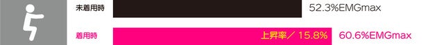 未着用時:52.3%EMGmax ⇒ 着用時:60.6%EMGmax 上昇率:15.80%
