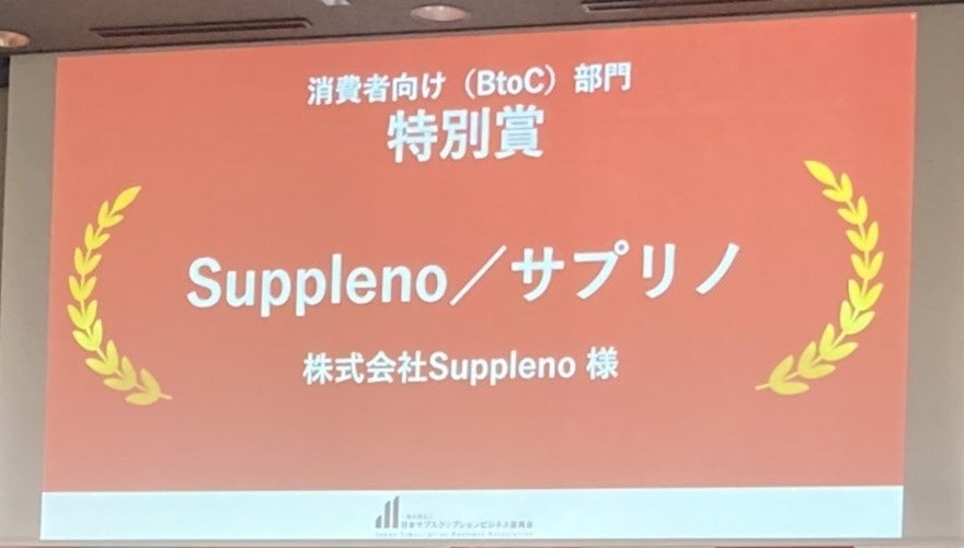 《株式会社Suppleno》が提供する、あなたのカラダと「こうなりたい」に必要な栄養を届けるパーソナライズサプリ「サプリノ」は、12月7日(水)に開催された『日本サブスクリプションビジネス大賞2022』表彰式にて特別賞を受賞しました。