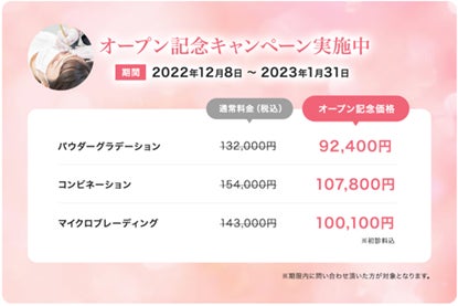 今回眉毛アートメイク施術をスタートする全国(札幌・名古屋・大阪・福岡)のクレアージュでは、期間限定でお得なオープン記念キャンペーンを実施いたします。