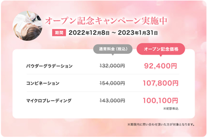 今回眉毛アートメイク施術をスタートする全国(札幌・名古屋・大阪・福岡)のクレアージュでは、期間限定でお得なオープン記念キャンペーンを実施いたします。