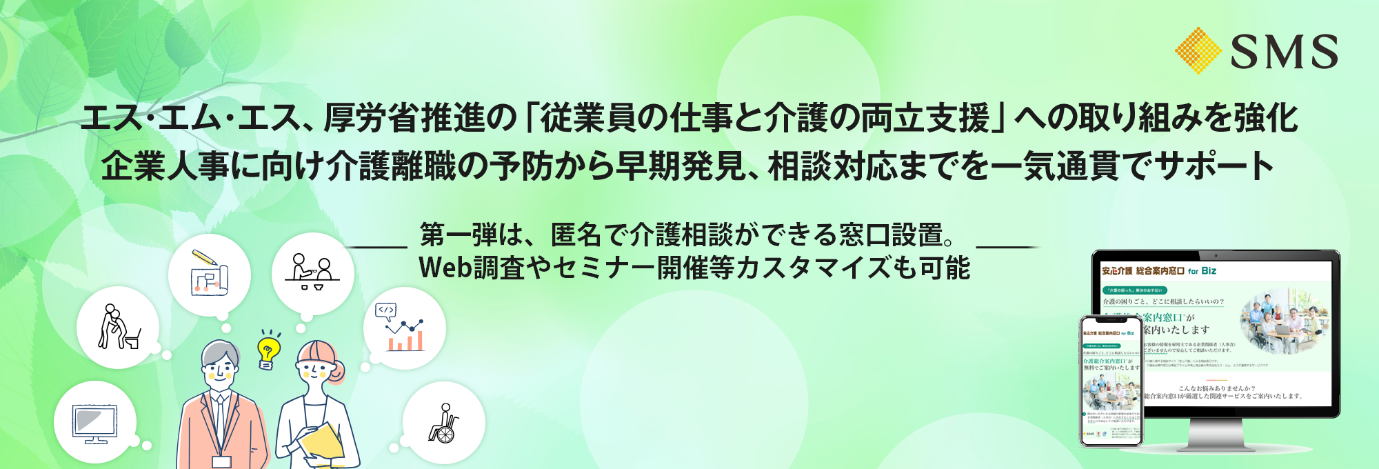 株式会社エス・エム・エス(本社:東京都港区、代表取締役社長:後藤夏樹、東証プライム、以下「当社」)は、厚生労働省が推進する「従業員の仕事と介護の両立支援(※1)」について、企業の人事労務担当者に向けた取り組みを強化したことをお知らせします。
