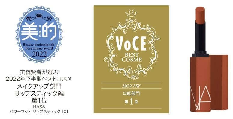 NARS 2022年下期ベストコスメ受賞最新情報:「パワーマットリップスティック 101」を中心に30賞以上受賞