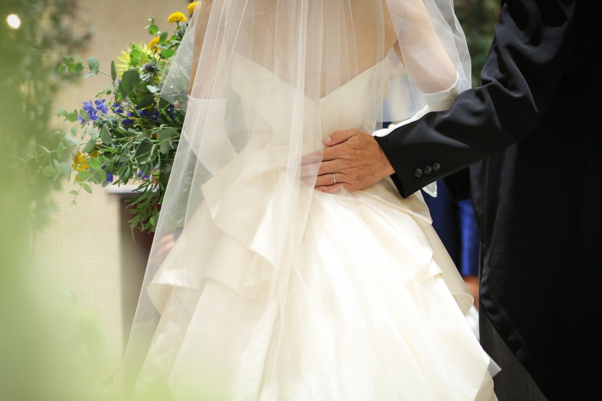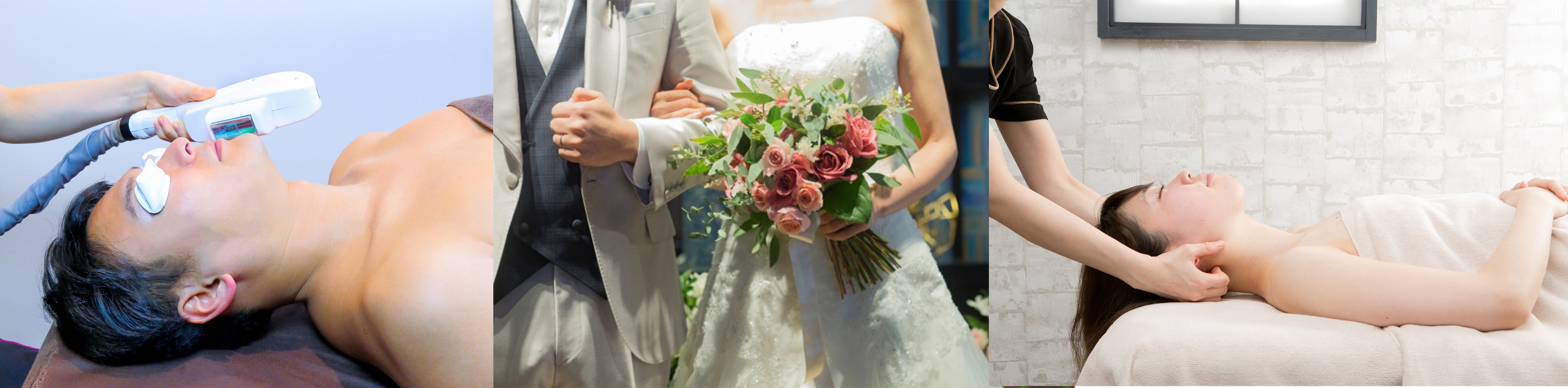 「まさか、主人も通うとは思っていなかったです」とおっしゃる奥様に、挙式当日のお肌の状態を伺うと、「メイクのりは、もちろん良かったですし、肌のトーンが明るくなってなめらかでした。また母に、首から肩にかけてのラインと背中がきれいと褒められました」。最高の状態でハレの日を迎えられましたこと、私たちも嬉しく思います。
