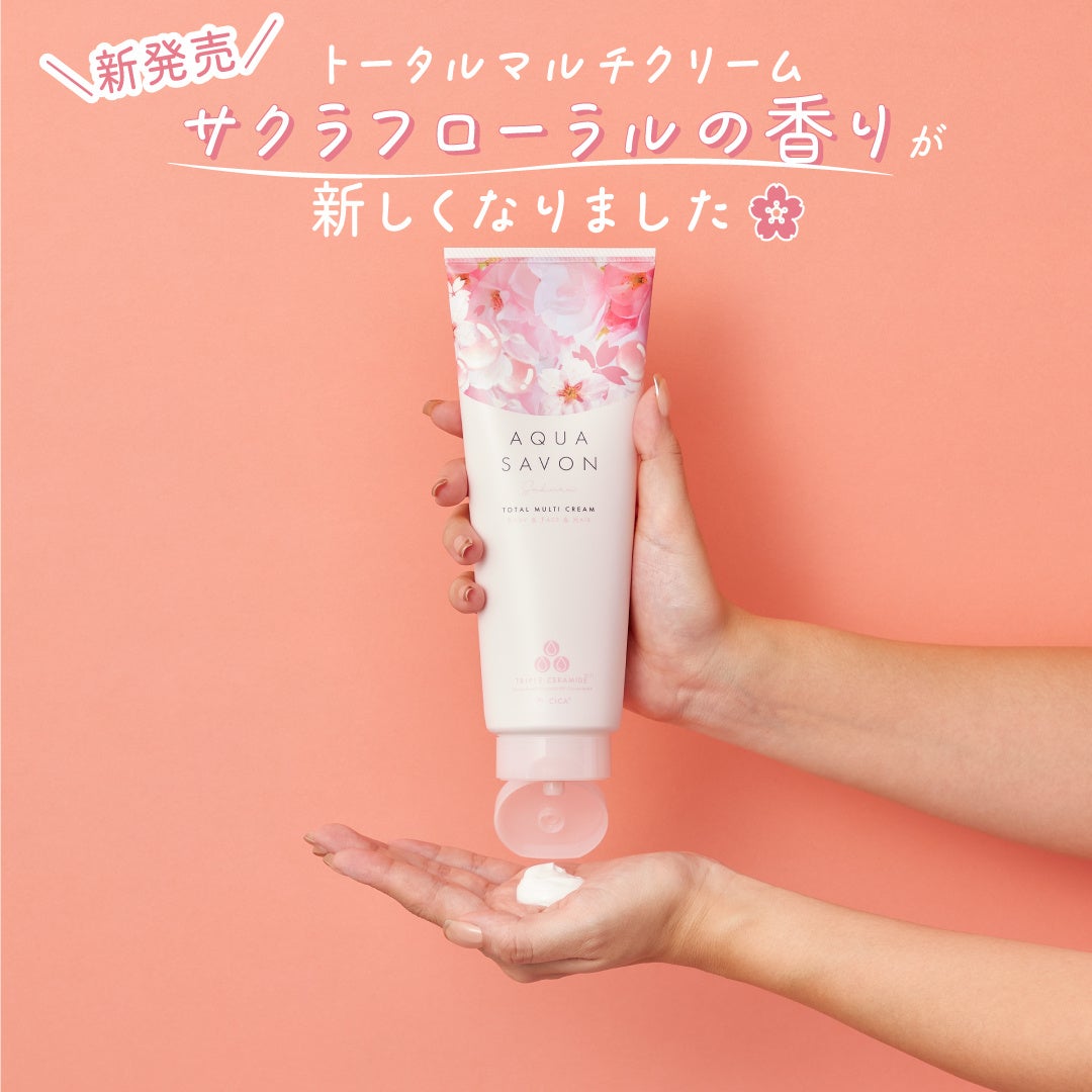 フレグランス、時計、ファッション雑貨等のブランドを取り扱う専門商社である株式会社ウエニ貿易(本社:東京都台東区、代表取締役社長:宮上光喜)は、せっけんの香りをテーマにしたコスメティックブランド「アクア シャボン(https://aquasavon.jp/)」から、からだ・顔・髪にも使える全身用保湿クリーム「アクア シャボン トータルマルチクリーム サクラフローラルの香り」をリニューアル発売。春季・数量限定で、2022年12月14日(水)にEC先行発売、2023年1月9日(月)に一般発売を開始いたします。