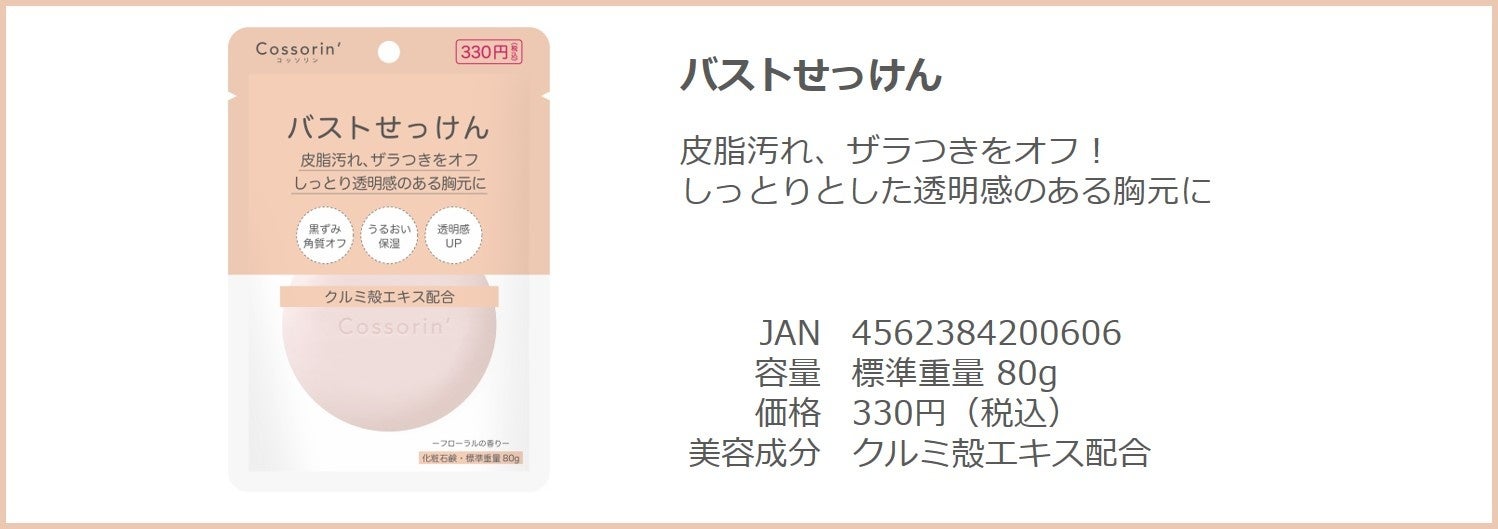 コッソリン バストケアシリーズは洗浄から保湿まで様々なバストアイテムを取り揃えています。