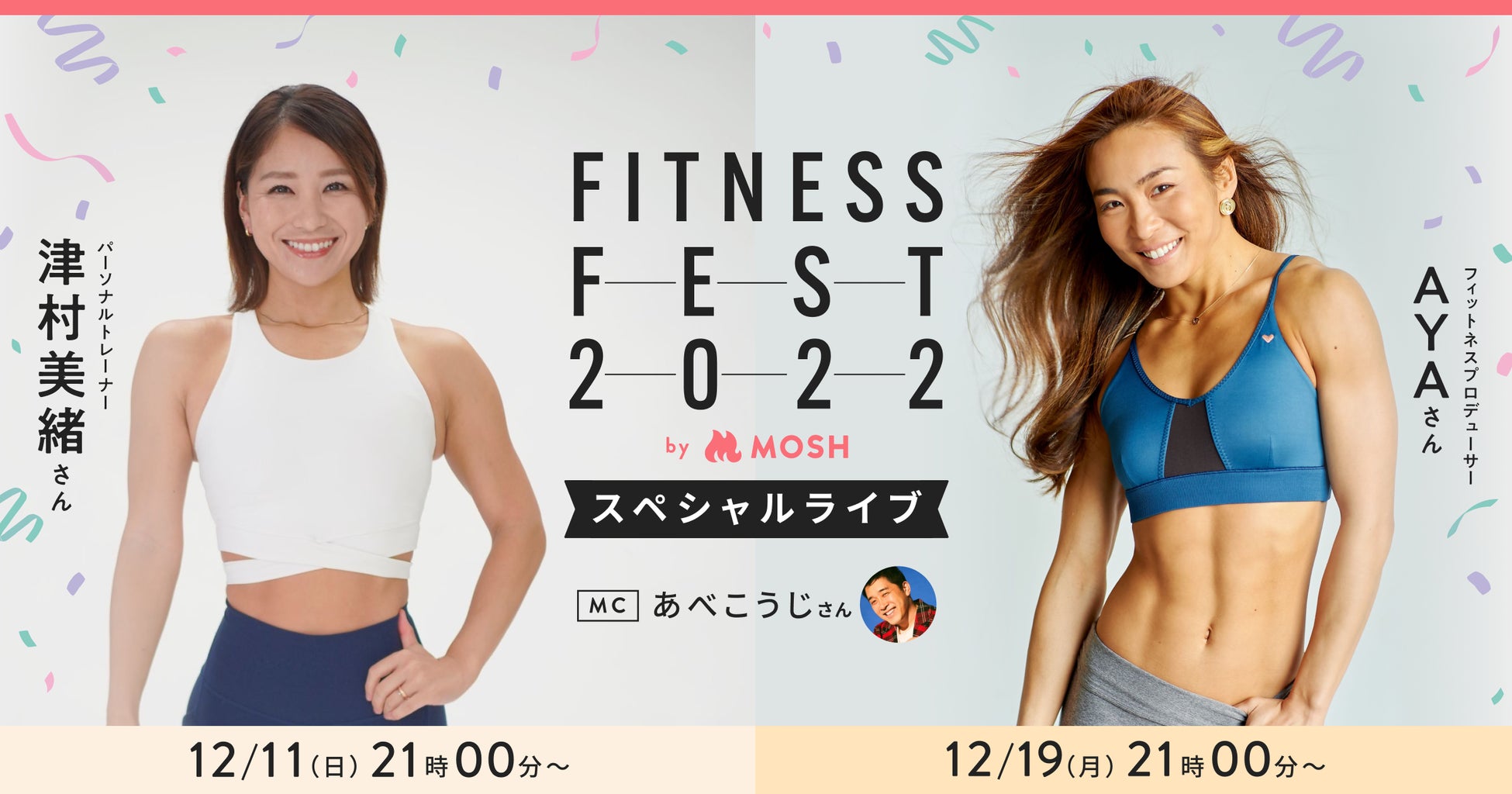また『フィットネスフェス2022 by MOSH』の開催を記念して、あべこうじさん・津村美緒さん・AYAさんによるスペシャルInstagramライブも実施いたします。