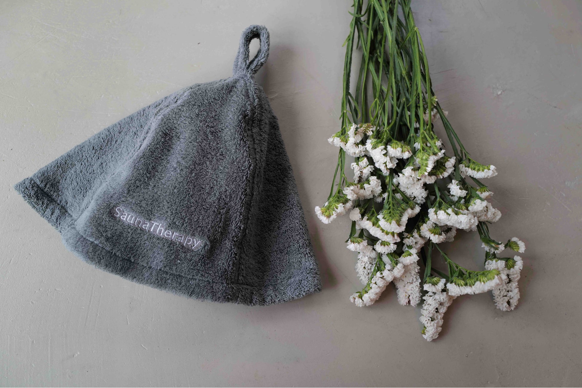 オリジナルサウナハットはふんわりと柔らかく、髪や顔をサウナの熱気からすっぽりと守ってくれます。