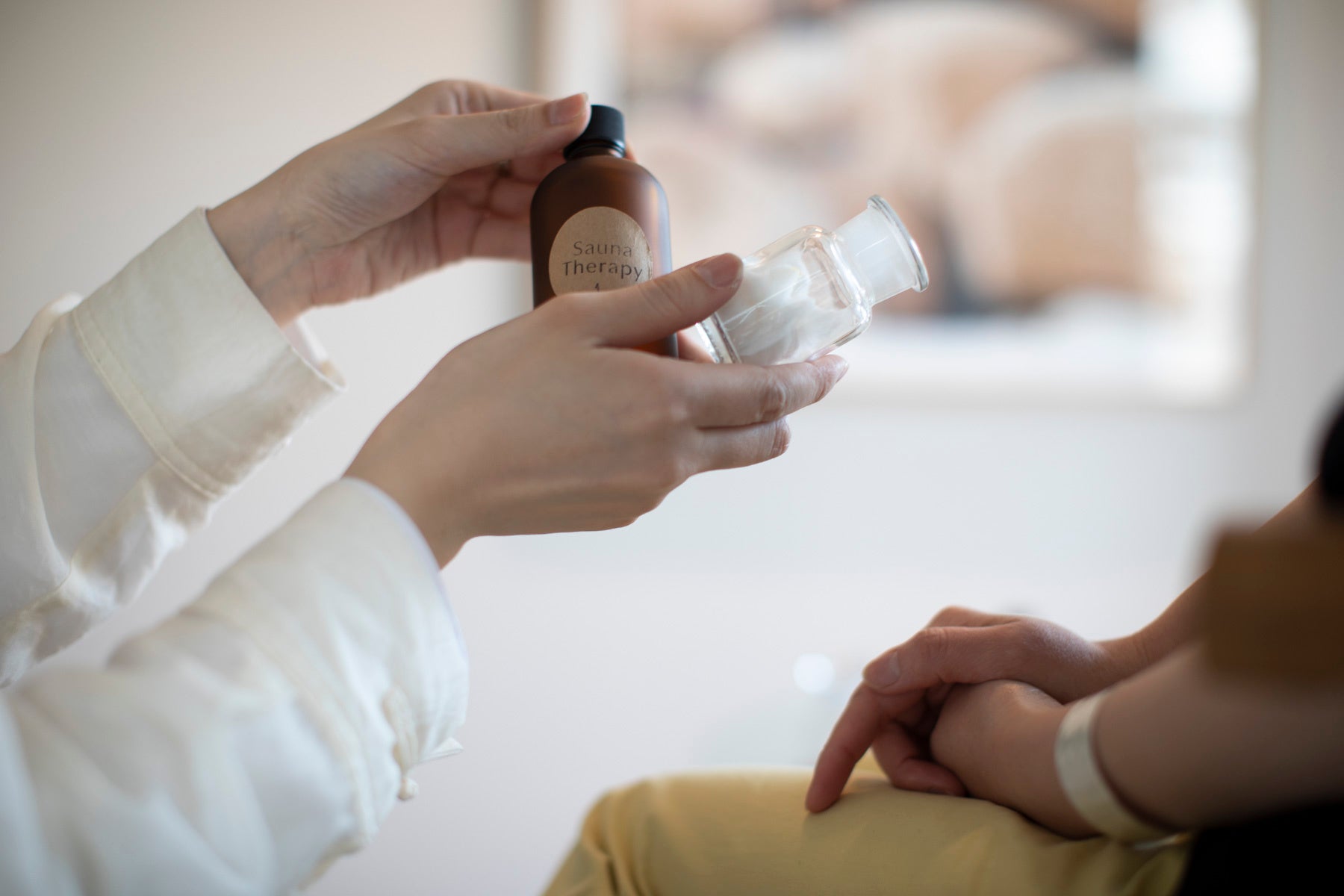 アロマオイルは弊社の調合師が季節毎に独自にブレンド。サウナ内が湿度と香りで満たされ、ゆったりとお過ごし頂けます。