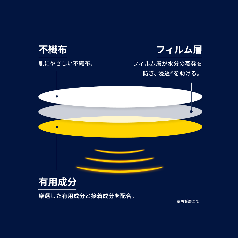 パッチに配合された成分が濃度勾配により、肌表面から角質層へと浸透(※1)していきます。