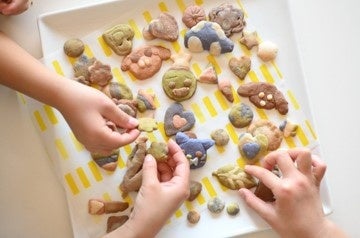つくって楽しい、食べておいしい、からだにも良い、米粉(グルテンフリー)のカラフルクッキー生地は、袋から出して、ほぐして、好きな形をつくって焼くだけです。水を加えたり、何かを加える手間は一切なく、簡単にカラフルで楽しいオリジナルのクッキーをつくることができます。