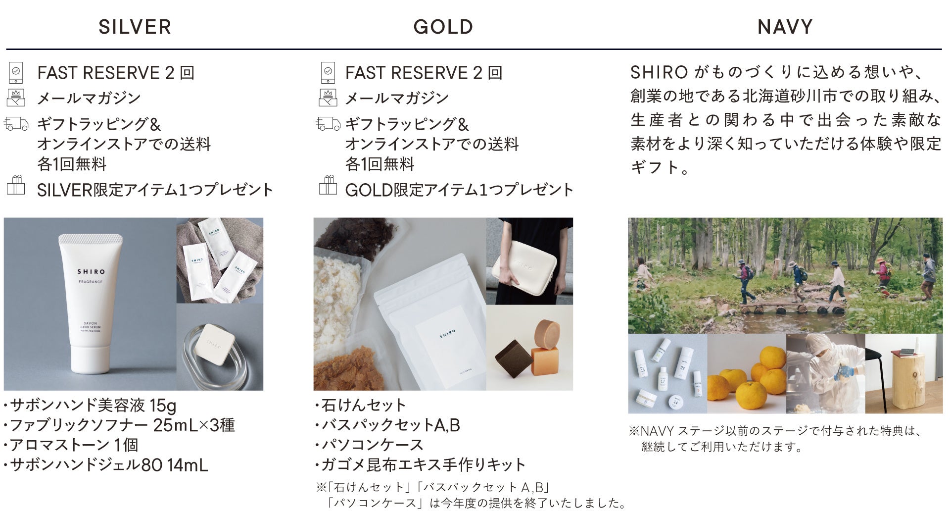 会員ステージごとにSHIRO ならではの特別な特典をお受け取りいただけます。