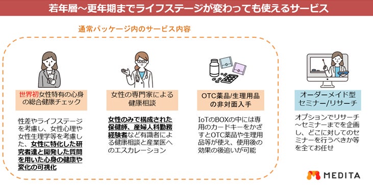予防から対策まで一貫でカバーでき、若年層~更年期すべての働く女性が使える健康経営支援のサービス提供を開始しました。