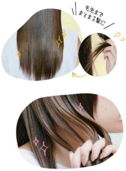 圧倒的なダメージ補修力で、髪の表面をなめらかにキューティクルまで整え、傷んだ枝毛をしっかりコーティングします。パサつきや広がりを抑えて見違えるような毛先へ。カラーリング後やパーマ後の髪にも。