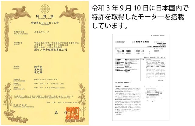 軽量なのに大風量、その秘密は日本国内で特許を取得したBLDCモーター。