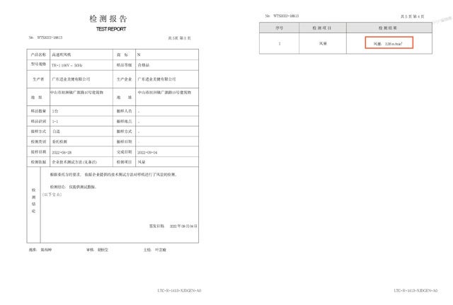 検証機関で試験実施を行い、最大風量 2.26 m3/分を検査機関CVC Testing Technology Co. , Ltd.で証明されています。