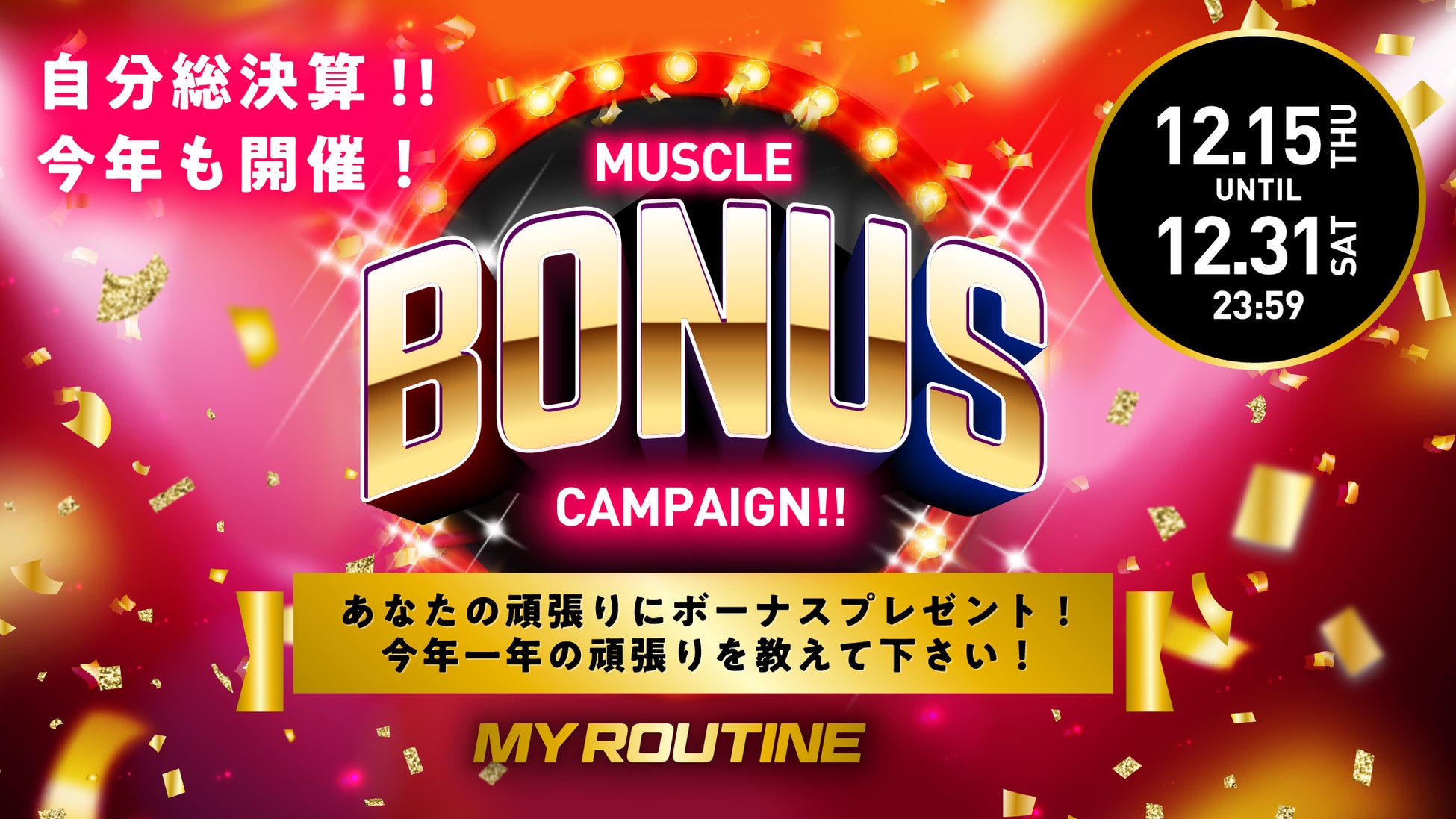 1年間頑張った自分自身を評価し、「2023年も目標をもって頑張ろう」と、思える企画にしたく、この度キャンペーンを開催致します。マイルーティーン公式Twitter・Instagramから頑張ったエピソードを募集し、その頑張りを称え、表彰状と共に「マイルーティーン MAX最強7点セット」をプレゼントします。是非多くの頑張ったエピソードをお待ちしております。