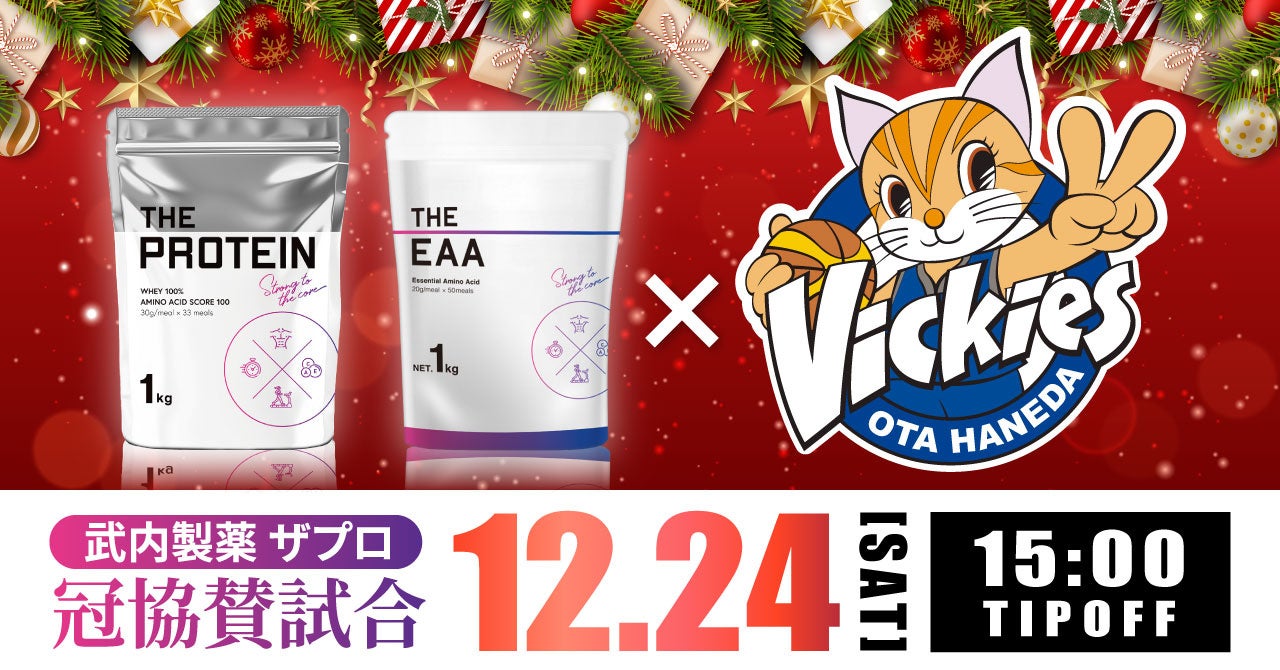 健康食品・化粧品のD2C、OEM事業を展開する武内製薬株式会社(本社:東京都品川区西五反田 代表取締役:金光 左儒)は、バスケットボール女子日本リーグ(Wリーグ)に所属する東京羽田ヴィッキーズ(本部:東京都大田区、代表理事:髙野 稔)のオフィシャルパートナーとしてチームにプロテイン・EAAを協賛しています。この度、2022年12月24日(土)に開催される「東京羽田ヴィッキーズ vs ENEOSサンフラワーズ」にて初の冠協賛試合を開催いたします。