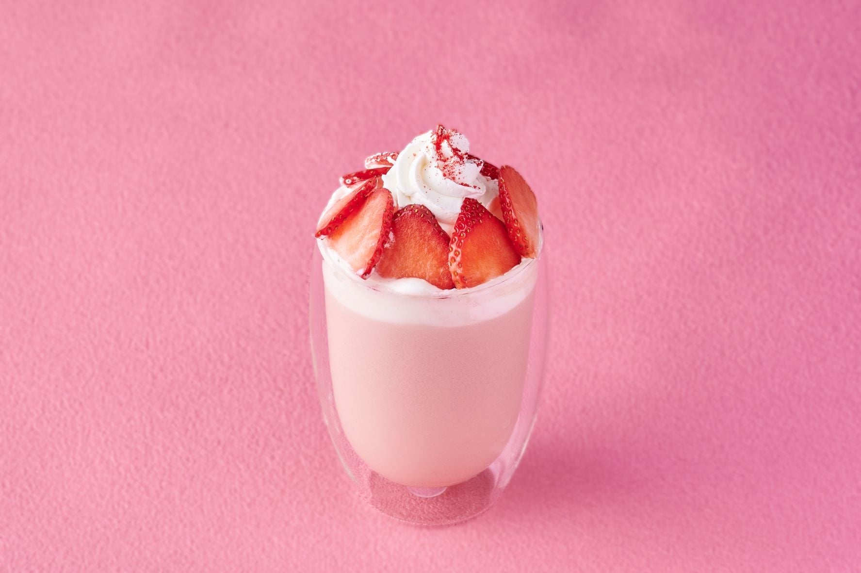 トップにはたっぷりの苺とホイップクリームをデコレーションした見た目にも可愛らしい一杯です。