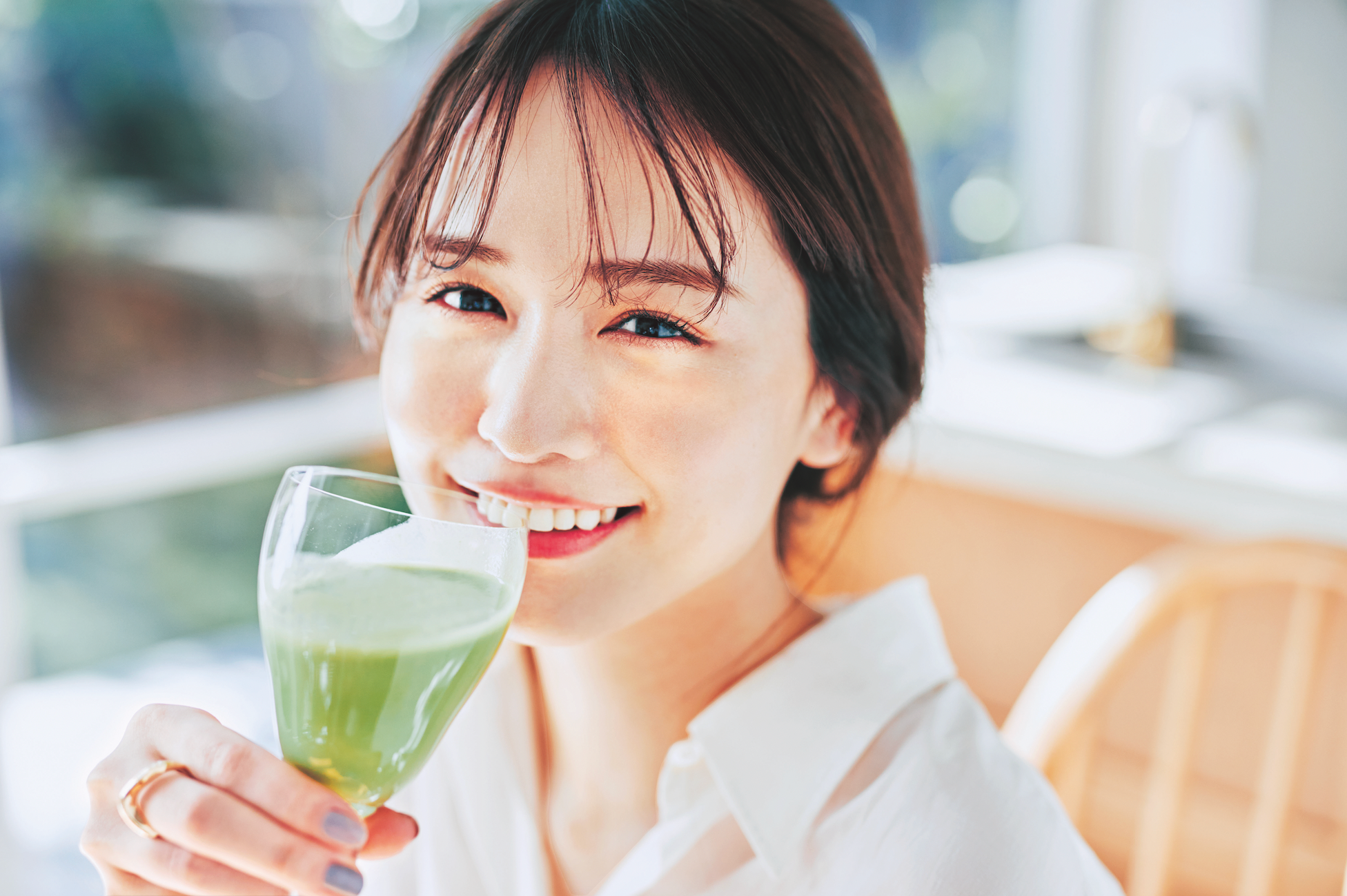 愛知県産・西尾の抹茶を100%使用し、濃厚なおいしさを実現。1日に必要な9種類のマルチビタミンの1/2量を配合。肌トラブルや免疫が気になる人へ。