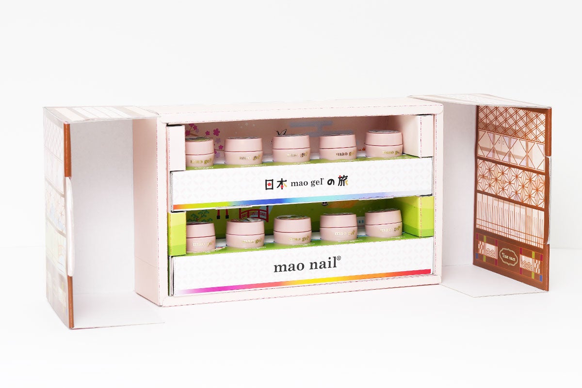 いつも全国のお客様からたくさんの温かい応援を頂き、各地を回って、感謝の気持ちを伝えたいと思っていました。そこで完成したのが、今までにない楽しみ方ができるジェルネイル「日本mao gelの旅」。mao nail初の、いや、ネイル業界初の全国ツアーです!