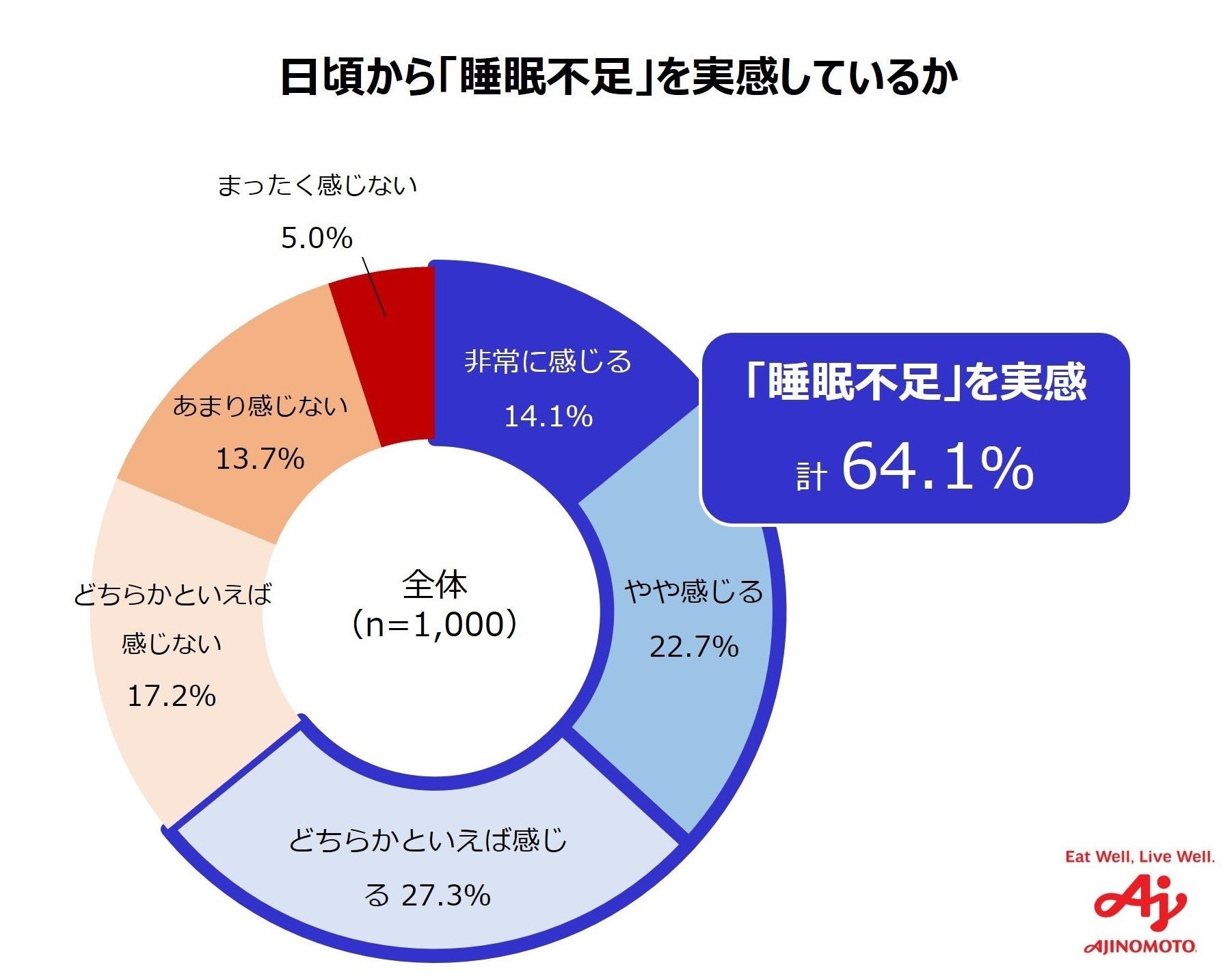 味の素株式会社(社長:藤江 太郎 本社:東京都中央区)は、「睡眠と日中の活動、自分らしさに関する意識調査」を2022年10月に実施し、現代社会における睡眠による「日中のパフォーマンス」、「自分らしさ」への影響度について調べました。(対象:全国の20~60代の男女1,000名)