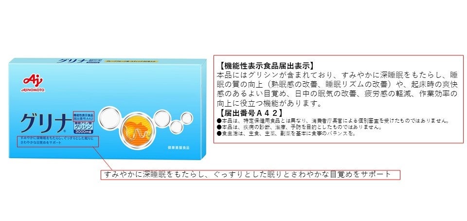 ※4:味の素㈱調べ(2015年7月)、有効回答数1 508名「グリナ」購入者への実感アンケート調査(「グリナ」届出表示の機能を「実感している」「やや実感している」と答えた人の