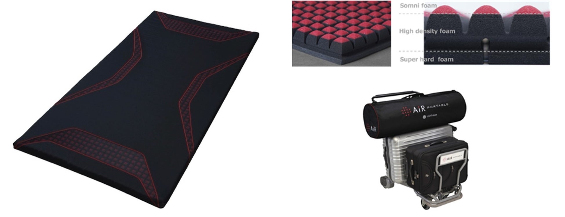 遠征の多いトップアスリートたちからの要望を受け、[エアーポータブル]モバイルマット」を進化させたアップグレードモデルが新登場。外泊時のホテルなどで快適な寝心地を実現するのはもちろんのこと、ご自宅でベッドマットレスにプラスするマットレスパッドとしても活躍します。