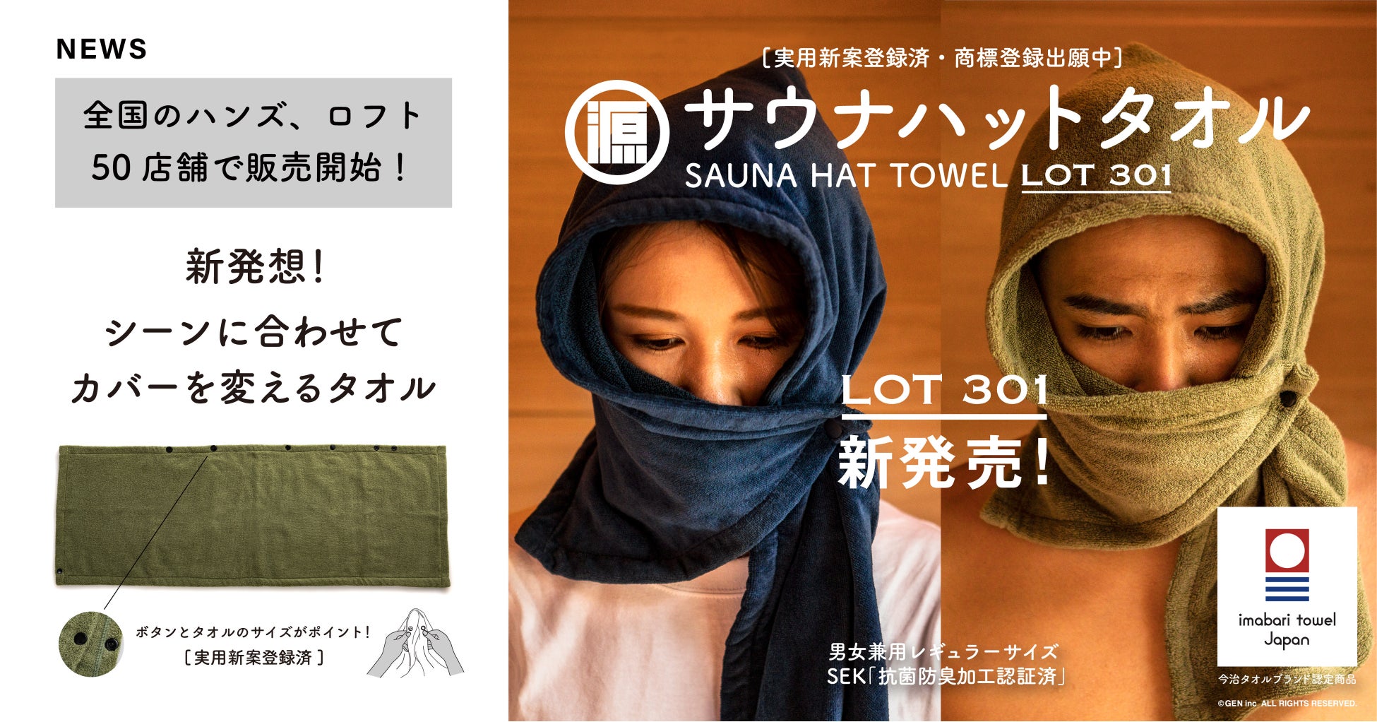 日常の良品を届ける源商店を展開する株式会社GEN(本社:横浜市 / 代表:武田 智幸)は、源商店から2022年11月11日に発売し、発売直後からメディアやSNSで話題となった、新しいサウナ体験を提案する「サウナハットタオル」を12月中旬より全国のハンズ、ロフト(計50店舗)にて順次店頭販売を開始いたします。