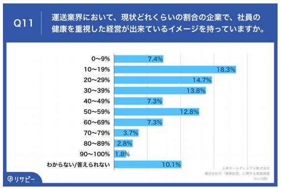 実際、弊社の調査(※)では7割の運送会社が「健康経営への取り組みを行っている」と回答しているものの、社員の健康を重視した経営が出来ているイメージでは、半数以上が「40%以下」と答えています。つまり、「定期検診」や「労働時間管理」など最低限の取り組みや福利厚生は導入しているものの、それが社員の健康に繋がっているのか実感が持てていないということでしょう。