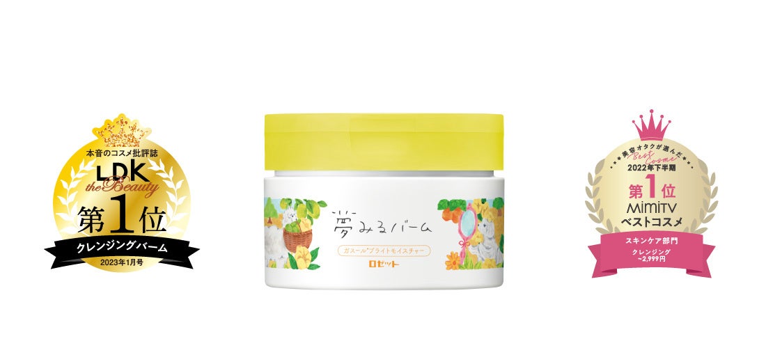ロゼット株式会社は、くすみ*1をケアする1品5役の多機能クレンジングバーム「夢みるバーム ガスール*2ブライトモイスチャー」が、本音のコスメ批評誌『LDK the Beauty』2023年1月号でクレンジングバーム部門第1位、美容メディア『MimiTV』が発表する「2022年下半期・MimiTV ベストコスメ」のクレンジング【~2,999円の部門】において第1位を獲得したことをお知らせいたします。今年8月の発売以来、SNSを中心に話題を集めた同商品は、“しっかり落とせる洗浄力”と“うるおいを逃がさない保湿力”で高い評価をいただき、今回の2冠受賞に至りました。