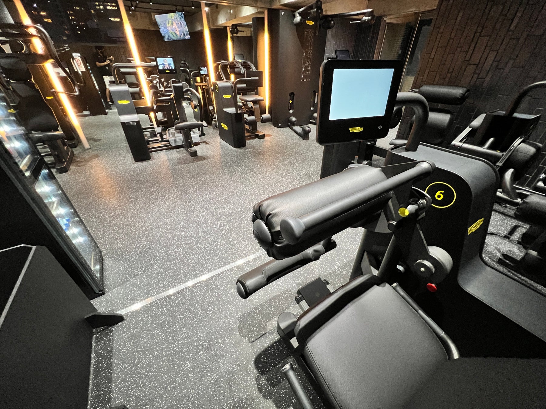 上階のジムフロアにはテクノジム社の、AIが管理するジムマシン「バイオサーキット」を完備。