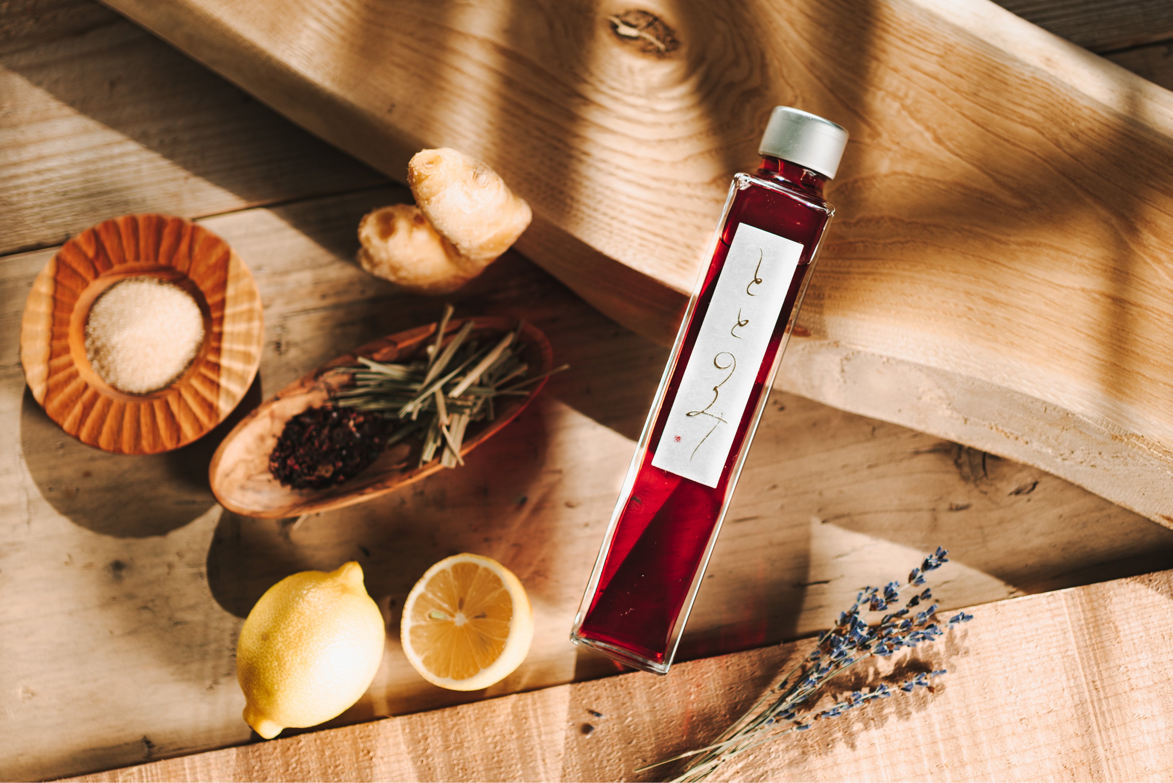 原材料名:オーガニックシュガー、ジンジャーシロップ(栽培期間中農薬不使用)、レモン果汁(栽培期間中農薬不使用)、有機レモングラス、ローゼル(栽培期間中農薬不使用)、ラベンダーエキス(栽培期間中農薬不使用)、有機キダチアロエエキス、GABA
