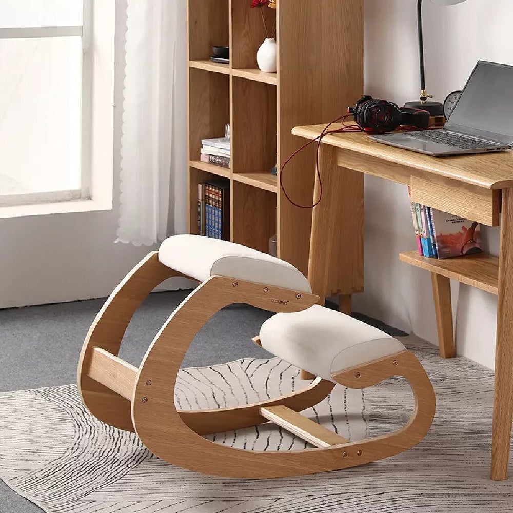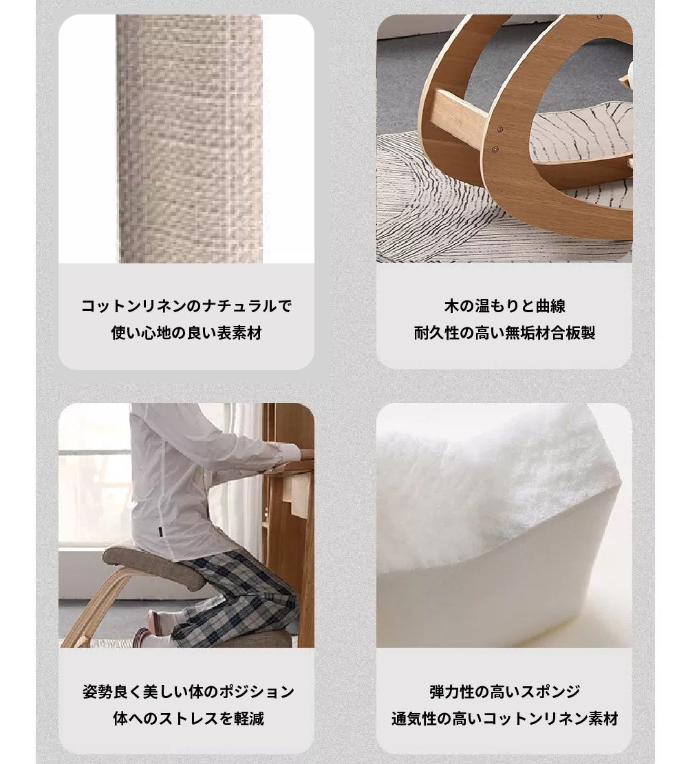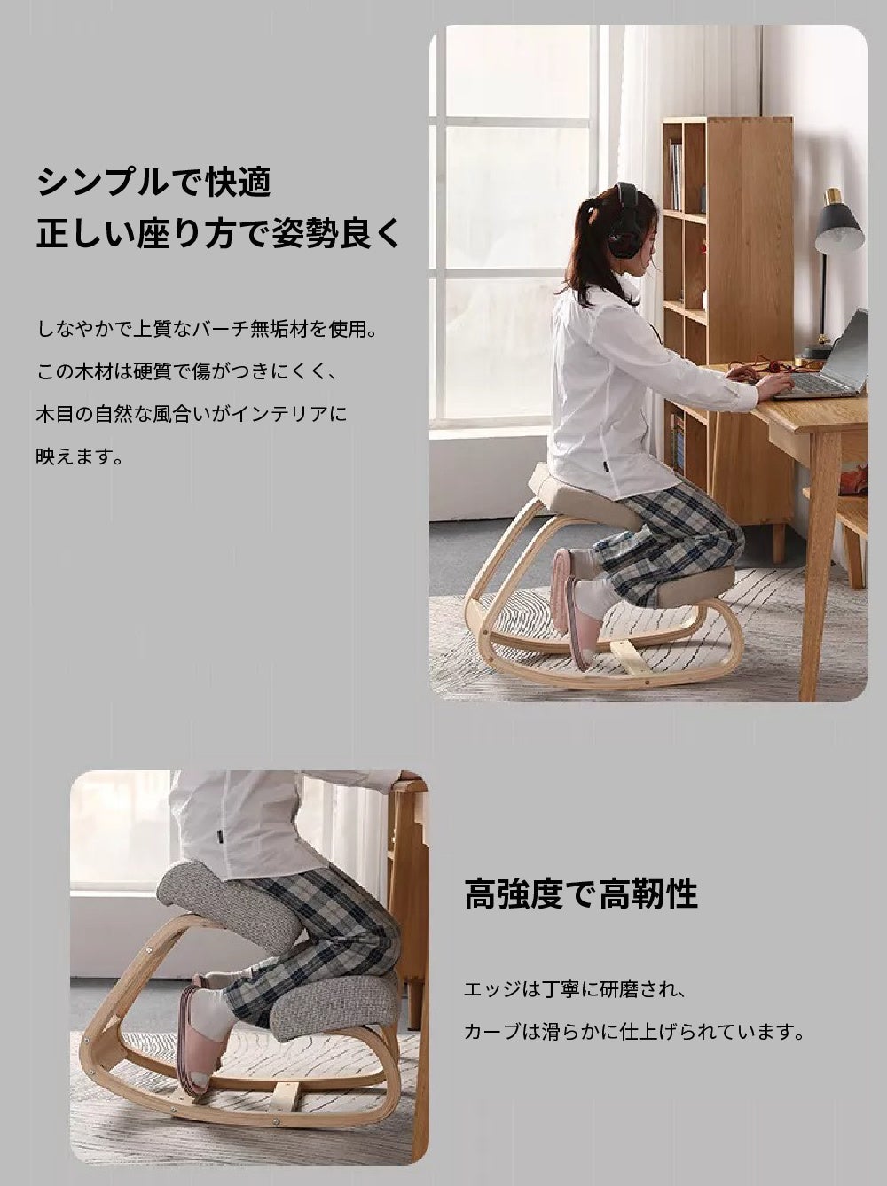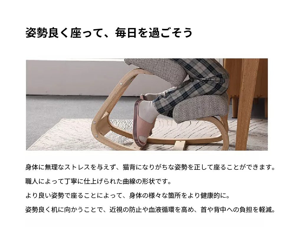 身体の重心を真っ直ぐ正して姿勢を良く保ちつつ、足と体をリラックスして座ることができるように、ノルウェーで考えられた北欧バランスチェアを元にしています。