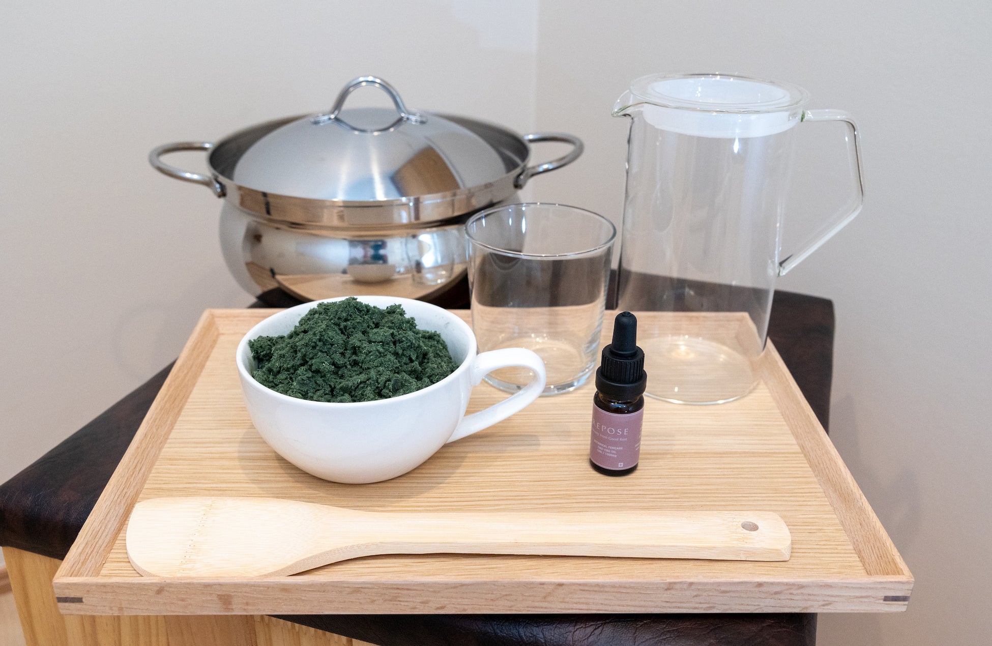 蔵王よもぎ蒸しにCBDオイルをプラスします。