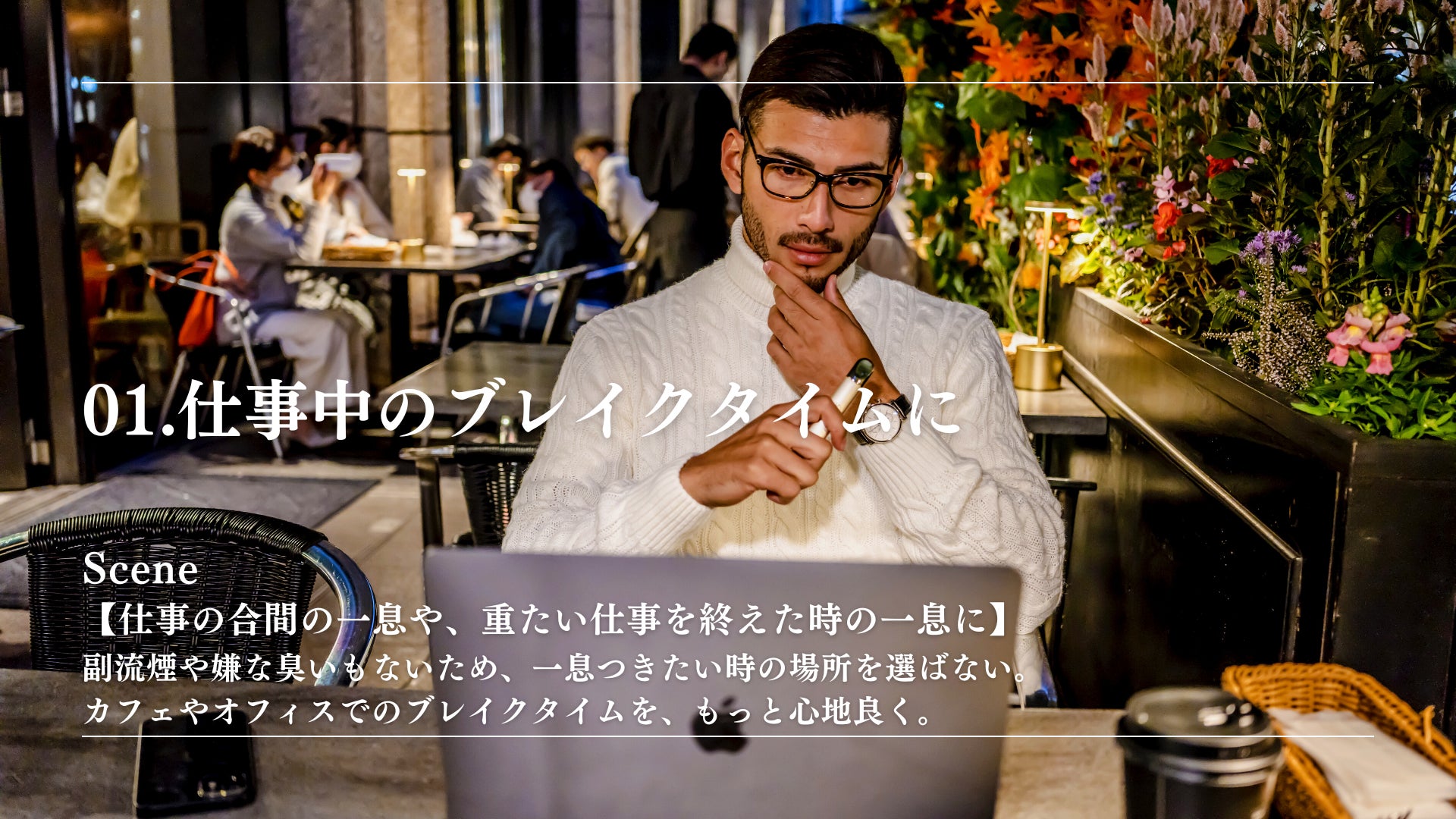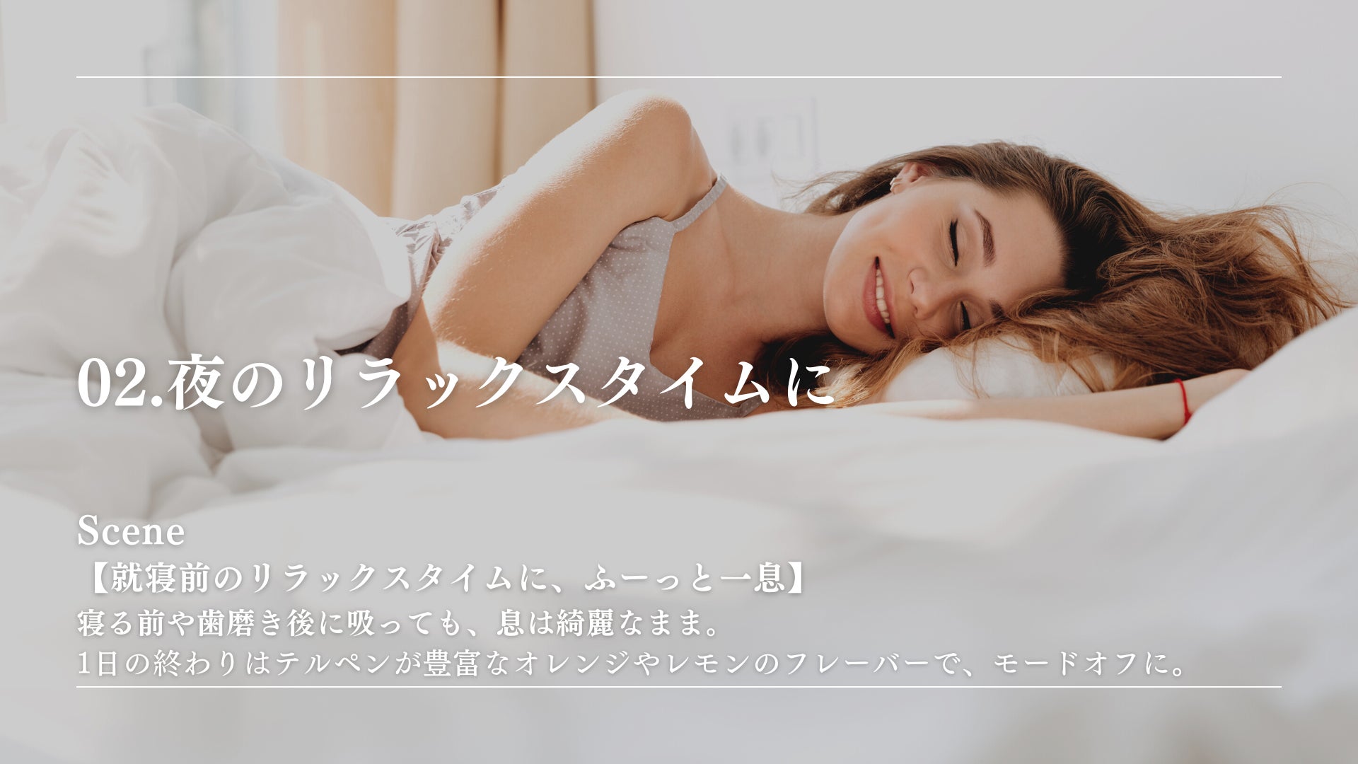タバコとは異なり人体に有害な成分や嫌な臭いも一切しないため、オフィスや車内などでも利用可能なヘルシーでスマートに睡眠の質や仕事パフォーマンスを高めるリラクゼーションプロダクト。