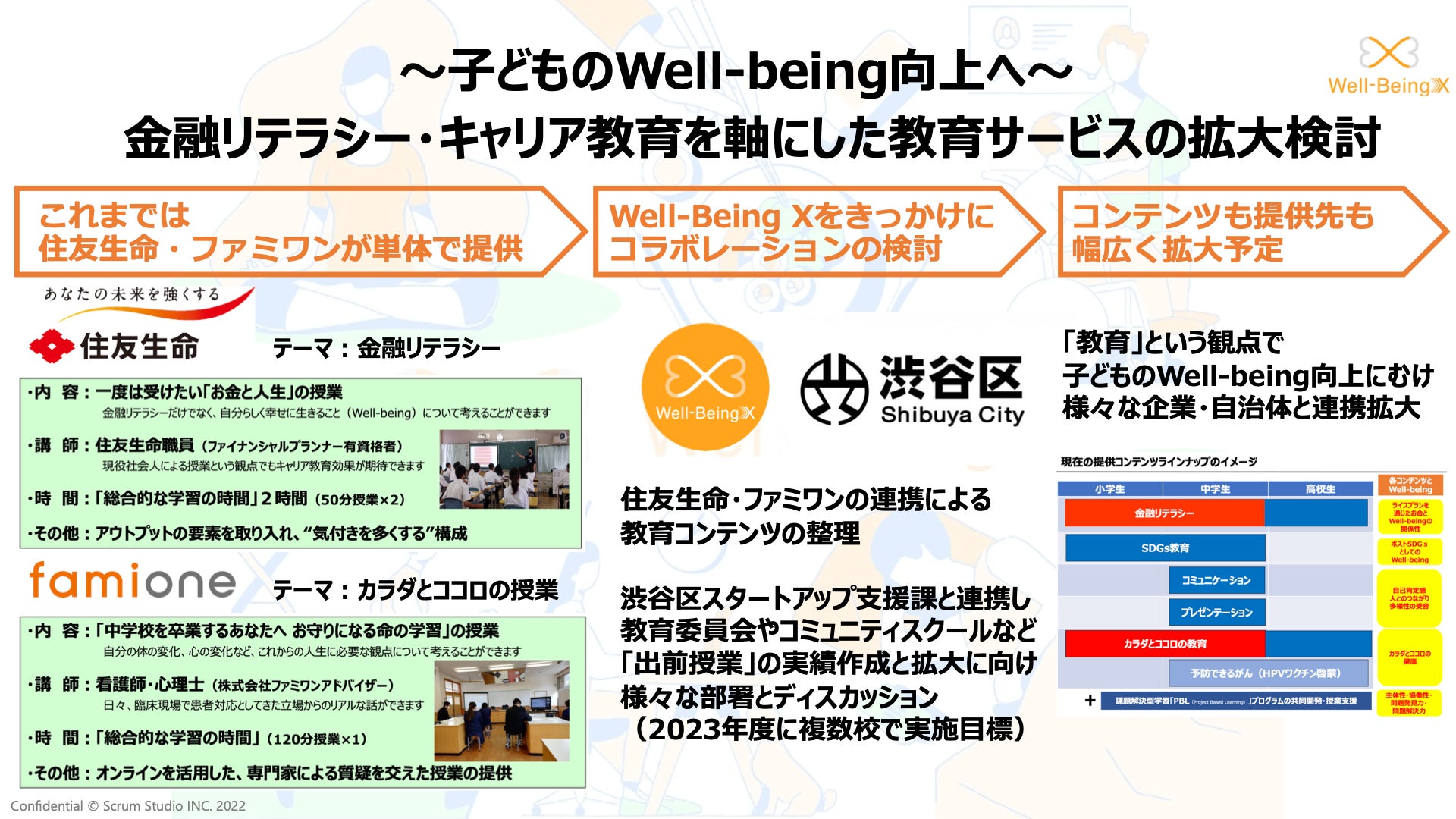スクラムスタジオ株式会社(本社:東京都渋谷区、代表取締役社長:髙橋正巳)は、グローバル・オープンイノベーション・プログラム『Well-BeingX』の一期目の活動の締めくくりとして、12月15日(木)に『Well-BeingX Conference 2022』を開催しました。