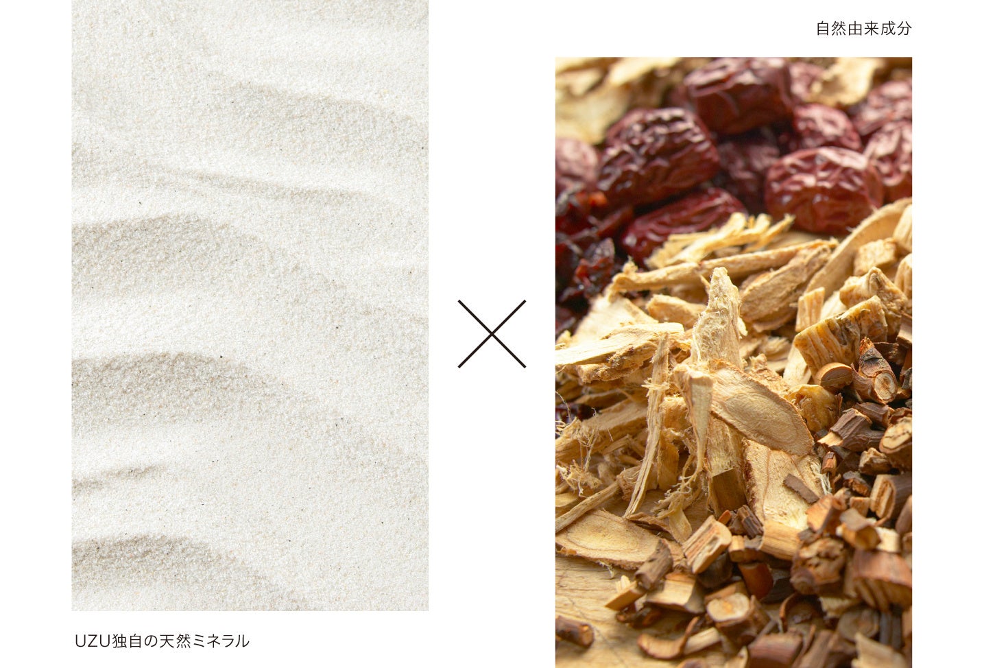 UZU独自の天然ミネラル成分による「土壌のケア」に加えて、根もとへの効果をさらに追及し、古来から毛髪への有用性が知られている代表的な植物由来をセレクト。選びぬいた4種をオリジナルの組み合わせで配合しました。(地黄、桑白皮、枇杷葉、大棗)*1
