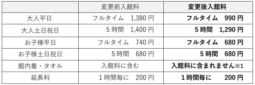 物価高騰が続く中、皆さまへ温かな癒しの時間をお届けしたいという想いから、オアシスはゆったりCOcoの入館料改定(一部料金の値下げ)を行うことにいたしました。