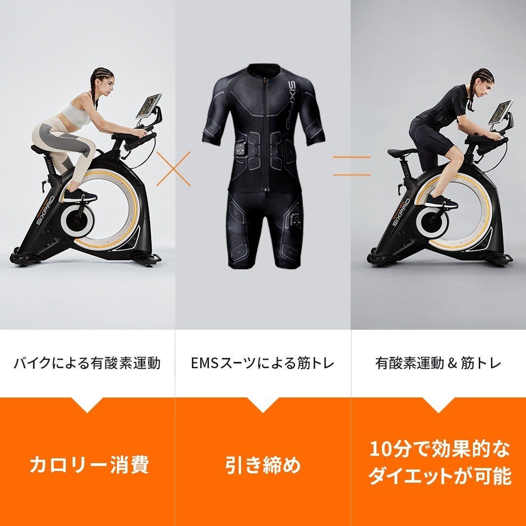 「Powersuit」の着用で全身をバランスよく鍛えることができるため、BIKEを10分漕ぐだけのシンプルなトレーニングで誰でも無理なく効率よくトレーニングを続けることができます。