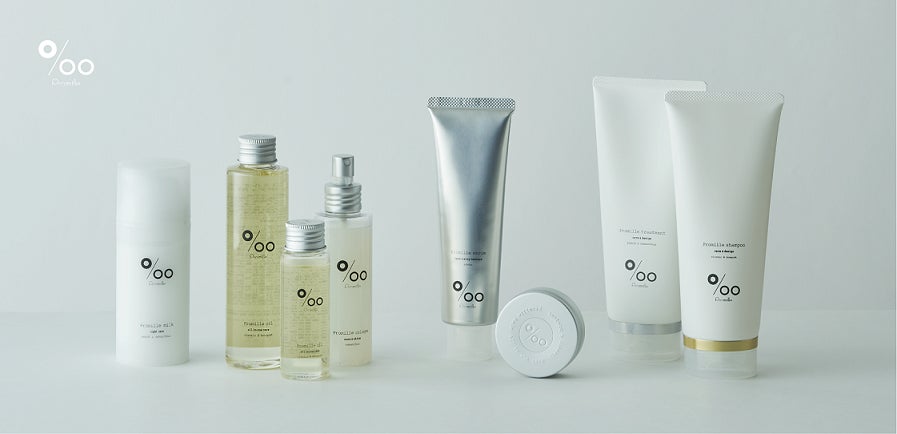 「Promille」は2019年のブランド誕生後、栄養素を損なわないよう低温抽出した天然由来成分を全てのアイテムに配合した、髪とお肌に優しいヘアケア・スタイリングブランドとして展開してきました。2021年2月にブランドパッケージをリニューアルし、現在シリーズ累計出荷本数100万本を突破。主軸商品である「Promille oil」はヘア&ボディどちらにも使用できるオールインワンオイルとして口コミで高い評価を頂いています。