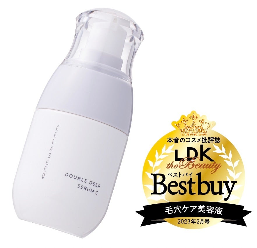 約1カ月間の使用でモニター全員の毛穴カウント数をグッと減らし、お悩み解消へと導きました。ビタミンCのほか、4種のセラミドやヒアルロン酸などの保湿成分、抗炎症作用のあるグリチルリチン酸も入っていて、肌にいい成分がてんこもり! ベタつかず超みずみずしいテクスチャーで、使い心地も抜群です。
