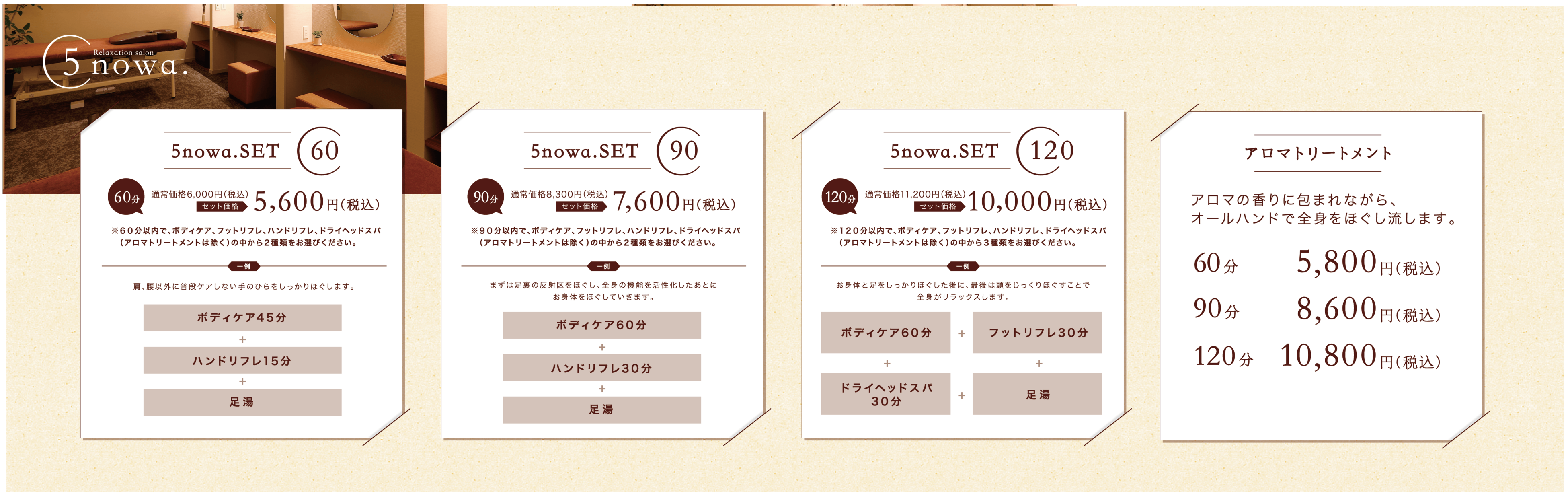 ⑤ 5nowa.SET90 90分:7,600円(税込)