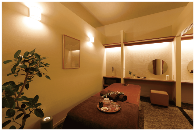 ブラウンを基調とした落ち着いた店内・完全個室のプライベートルーム空間でリラックスしていただけます。また、お友達同士やカップルでご利用いただけるペアルームもご用意しております。