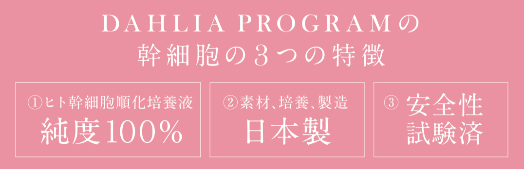 DAHLIA PROGRAMでは3種類のヒト幹細胞培養液を使用しているので、安定性に優れています。